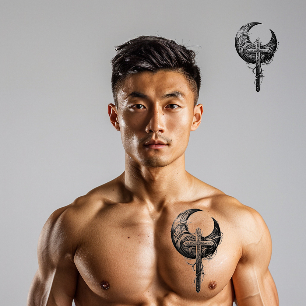 This Moon & Cross Tattoo Design represents a fusion of celestial and spiritual energy, making it an ideal design for: