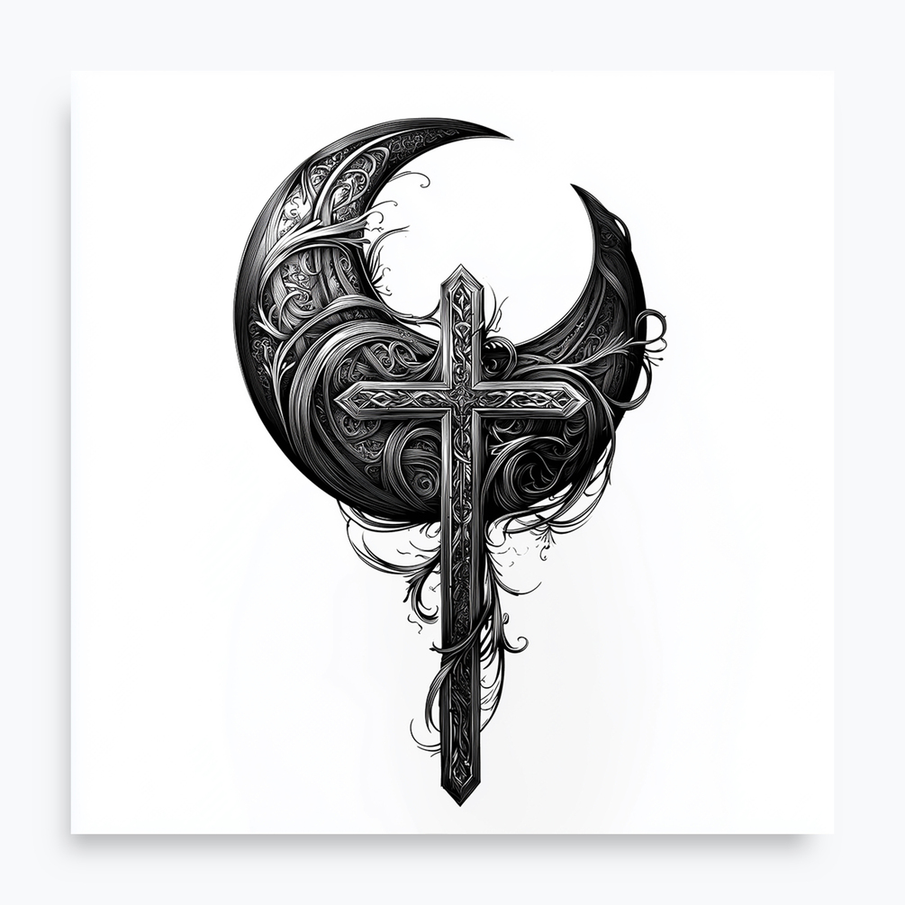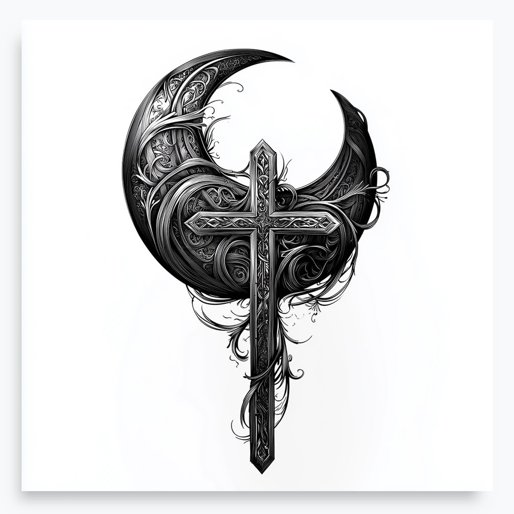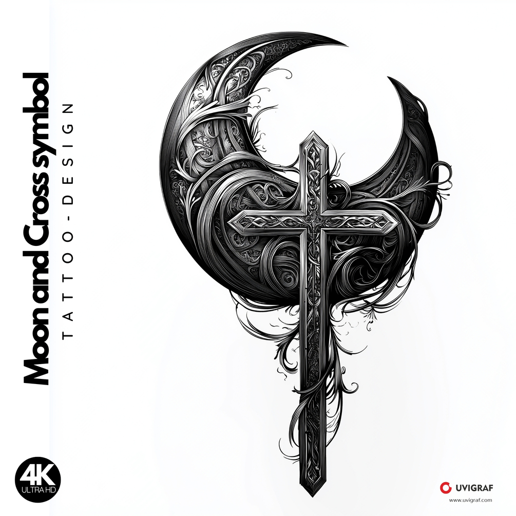 🔗 Download the Moon & Cross Tattoo Design Today and Elevate Your Artwork!