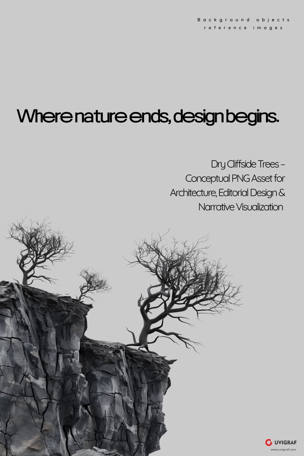 Dry Cliffside Trees – Conceptual PNG Asset for Architecture, Editorial Design & Narrative Visualization | br1.33