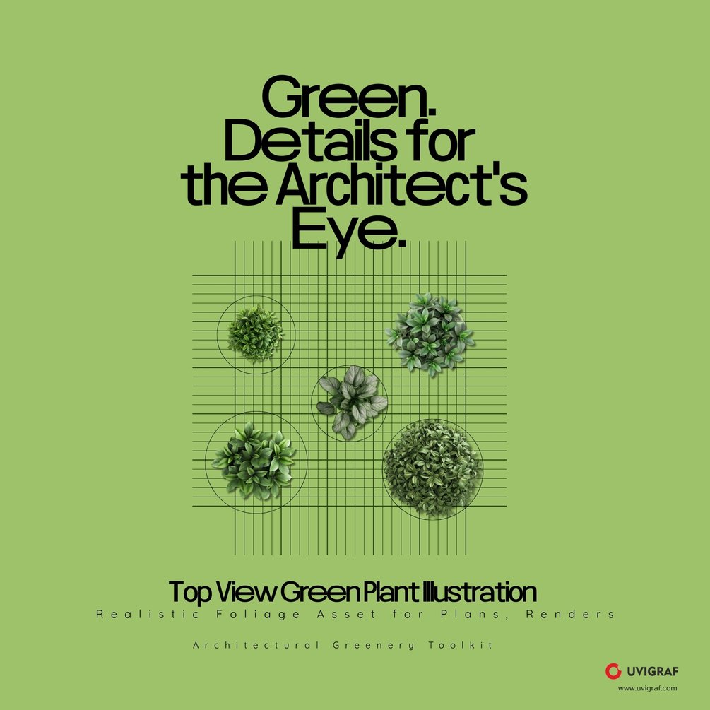 Top View Green Plant Illustration for Architects, 3D Artists & Interior Designers – Realistic Foliage Asset for Plans, Renders & Visualizations. | t2.48