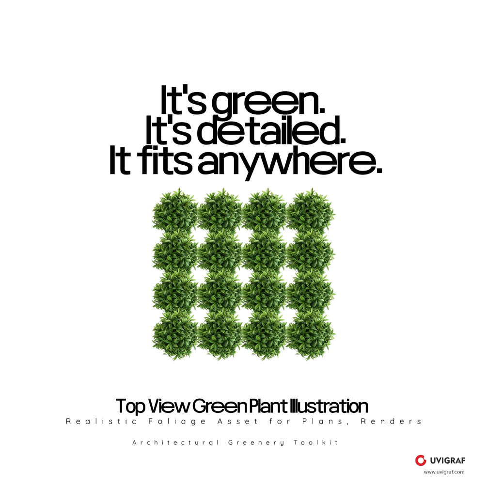 Top View Green Plant Illustration for Architects, 3D Artists & Interior Designers – Realistic Foliage Asset for Plans, Renders & Visualizations. | t2.48