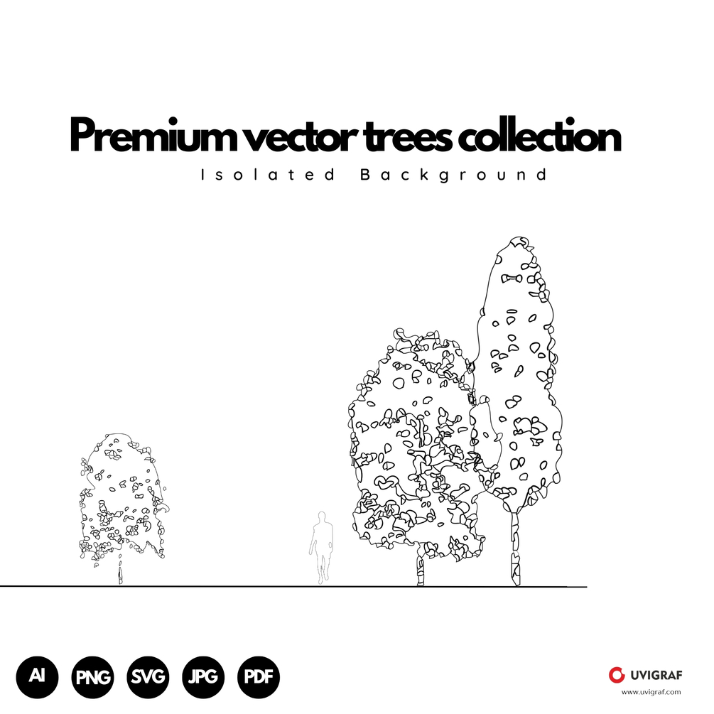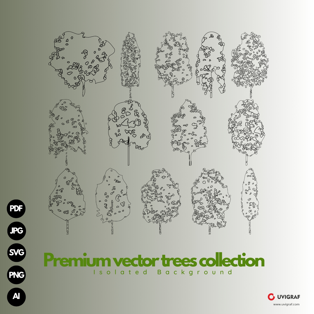 This Premium Vector Trees Collection includes detailed, scalable vector tree illustrations, ideal for professional design projects, architectural renderings, and branding. With high-resolution graphics, this pack is a must-have for designers.